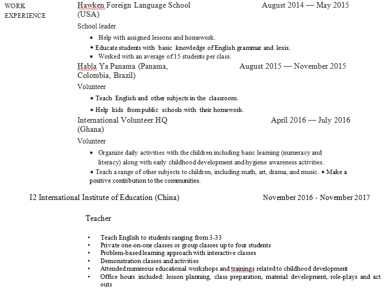 國籍: 其他 求職意向: 教師