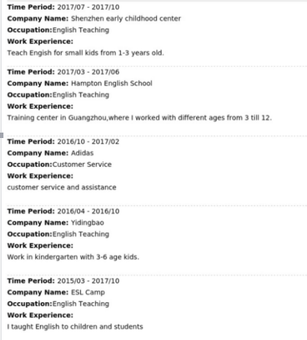 國籍: 其他 求職意向: 教師