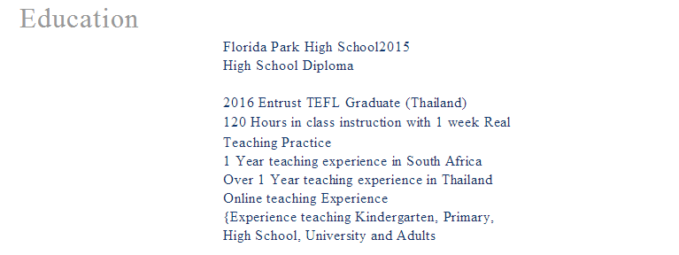 南非外教,沒有本科,有教學(xué)經(jīng)驗(yàn) |
