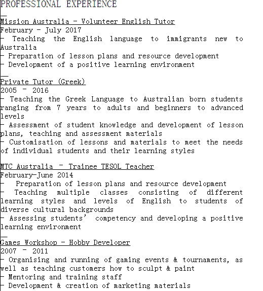 國籍: 南非 求職意向: 教師