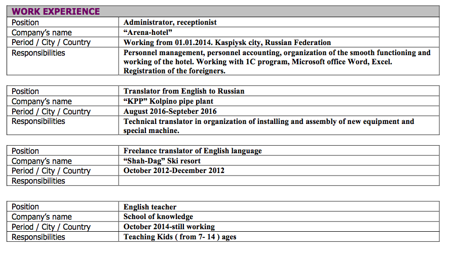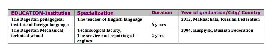 國籍: 俄羅斯 求職意向: 教師