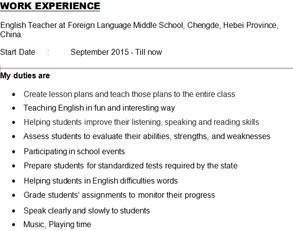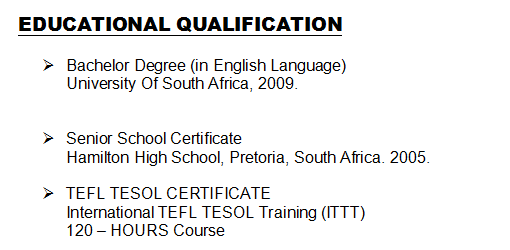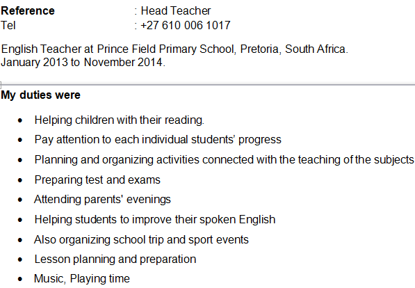國(guó)籍: 津巴布韋 求職意向: 教師