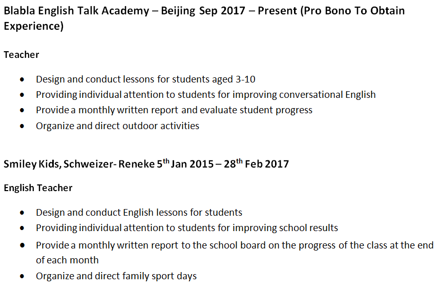 國籍: 津巴布韋 求職意向: 教師