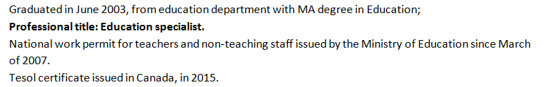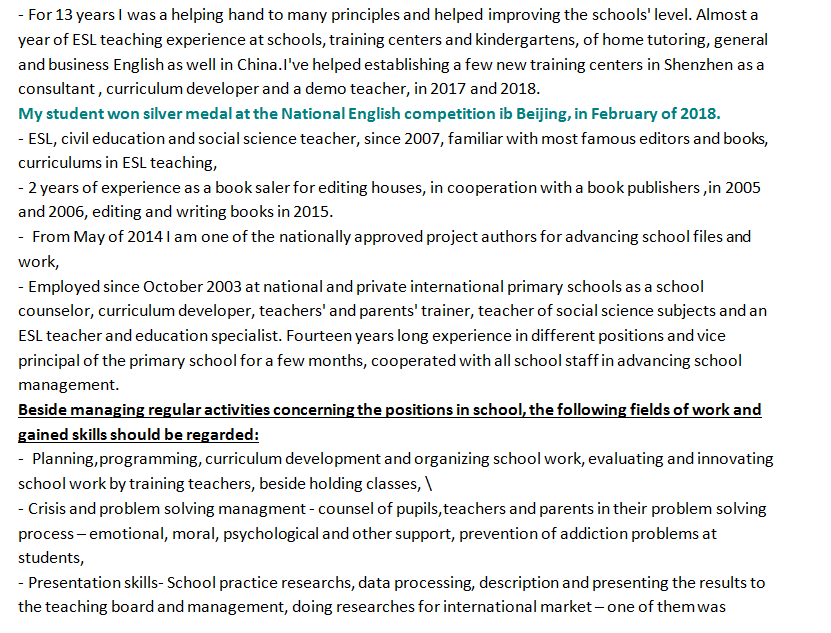 國(guó)籍: 烏克蘭 求職意向: 教師