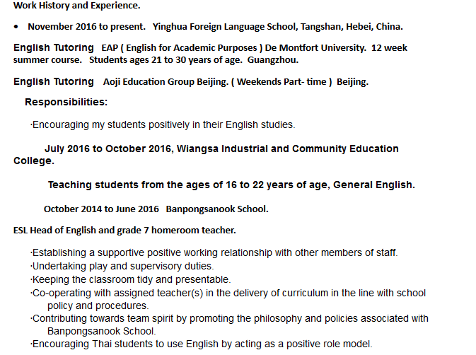 國籍: 其他 求職意向: 教師