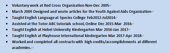 國籍: 其他 求職意向: 教師