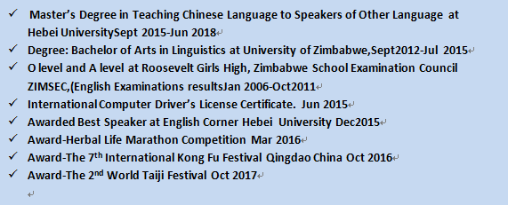 國籍: 津巴布韋 求職意向: 教師