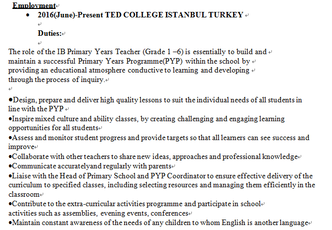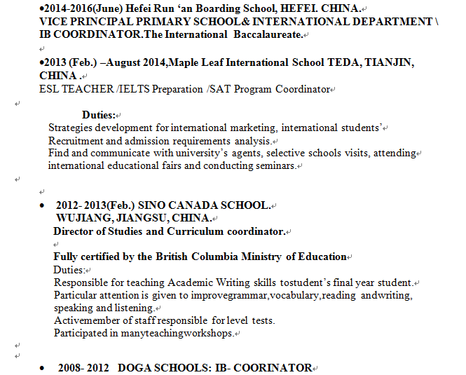 國籍: 加拿大 求職意向: 教師