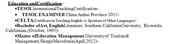 國籍: 美國 求職意向: 教師