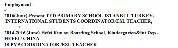 國籍: 美國 求職意向: 教師