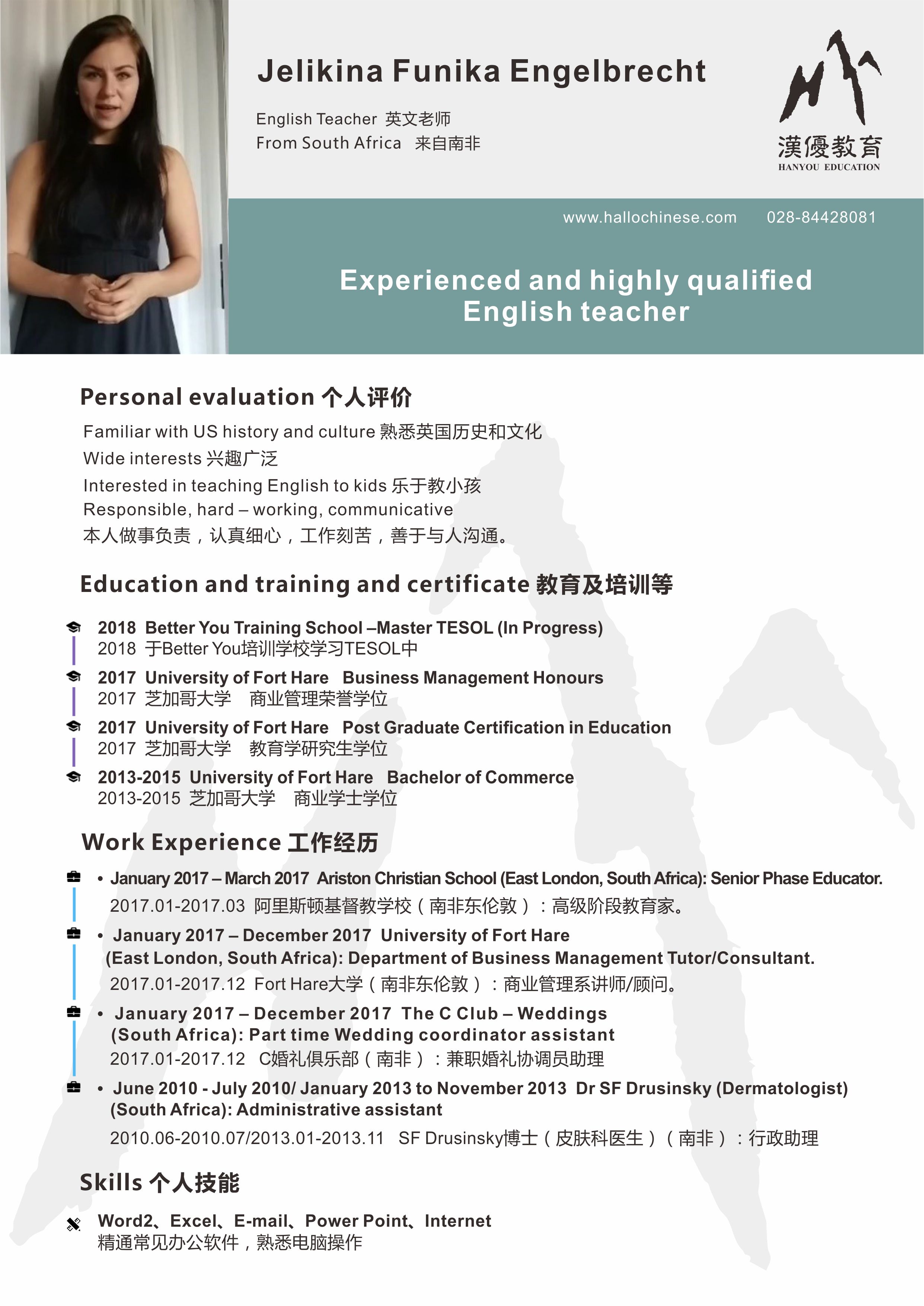 該外籍人才來自【漢優(yōu)教育】外教庫