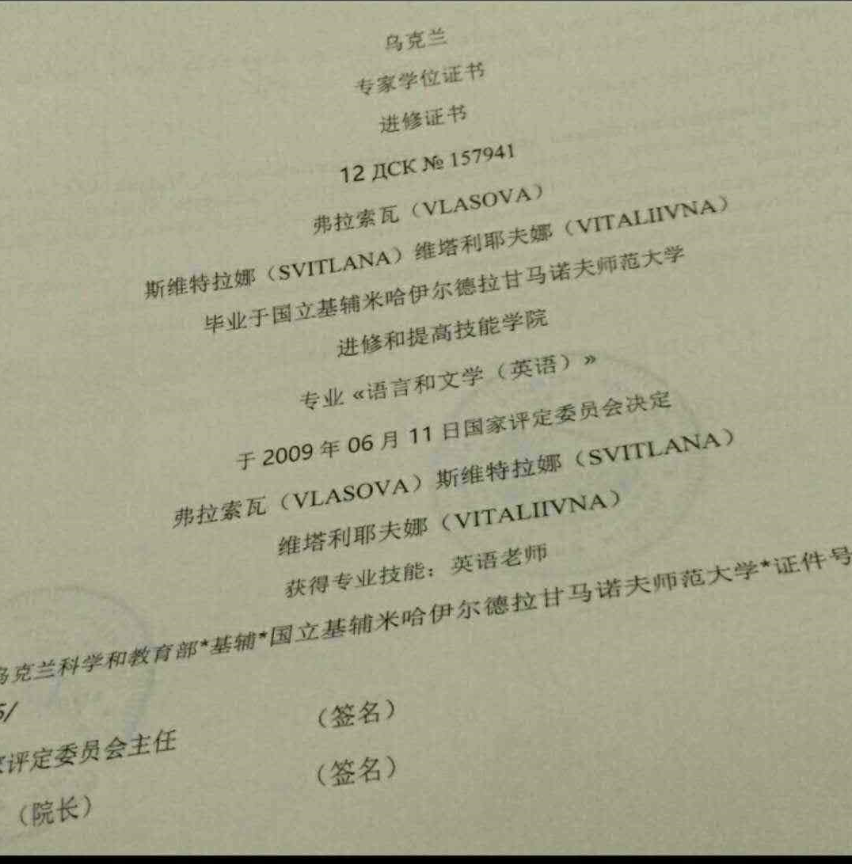 國(guó)籍: 烏克蘭 求職意向: 教師