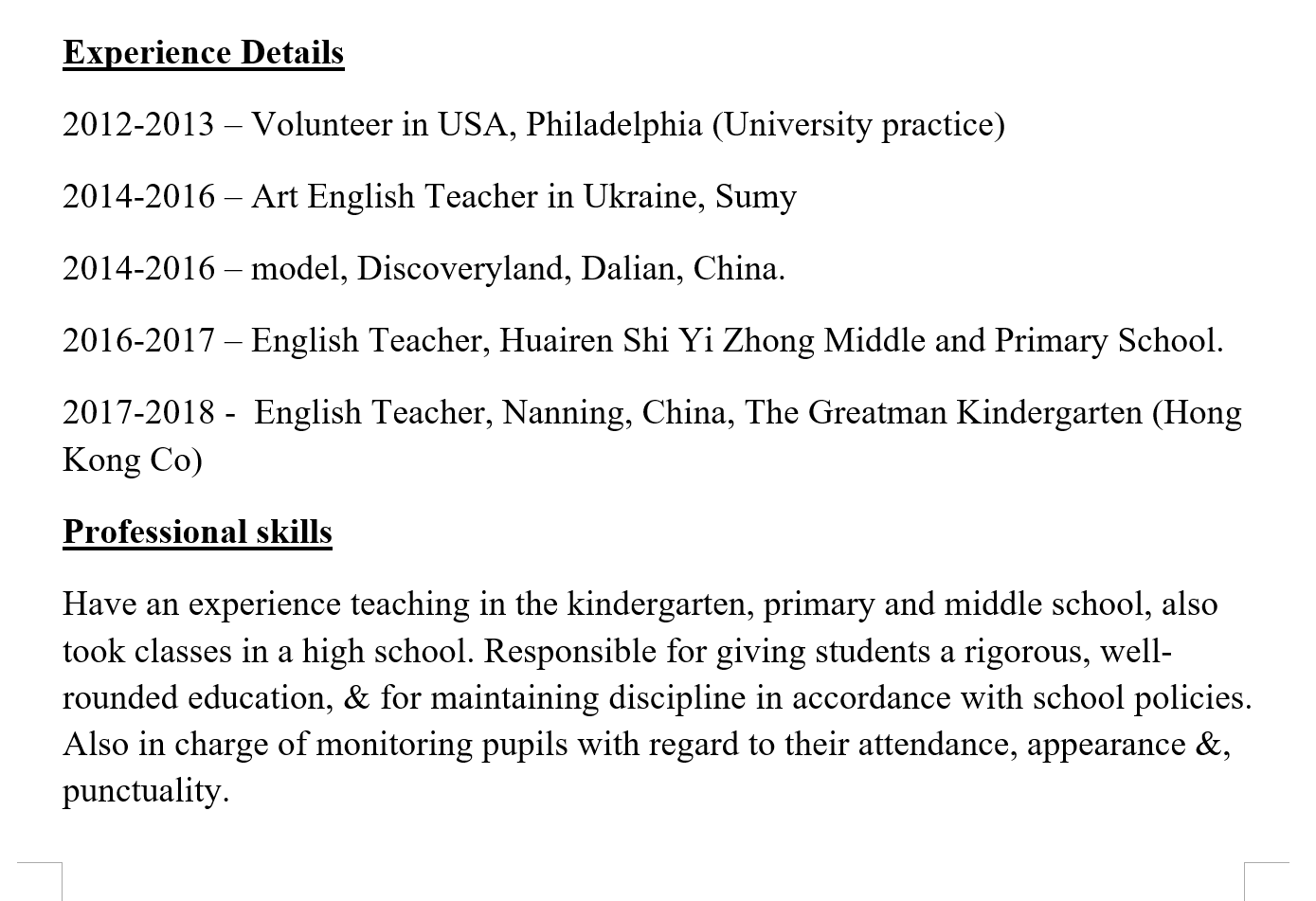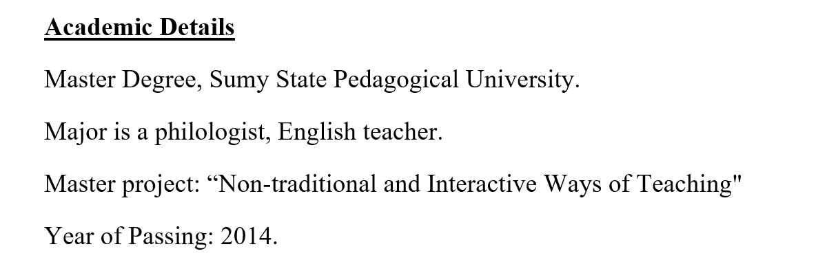 國籍: 烏克蘭 求職意向: 教師