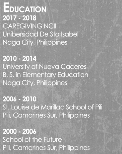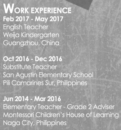 國籍: 菲律賓 求職意向: 教師