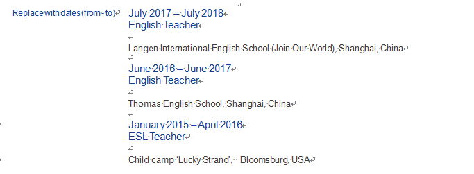 國籍: 美國 求職意向: 教師