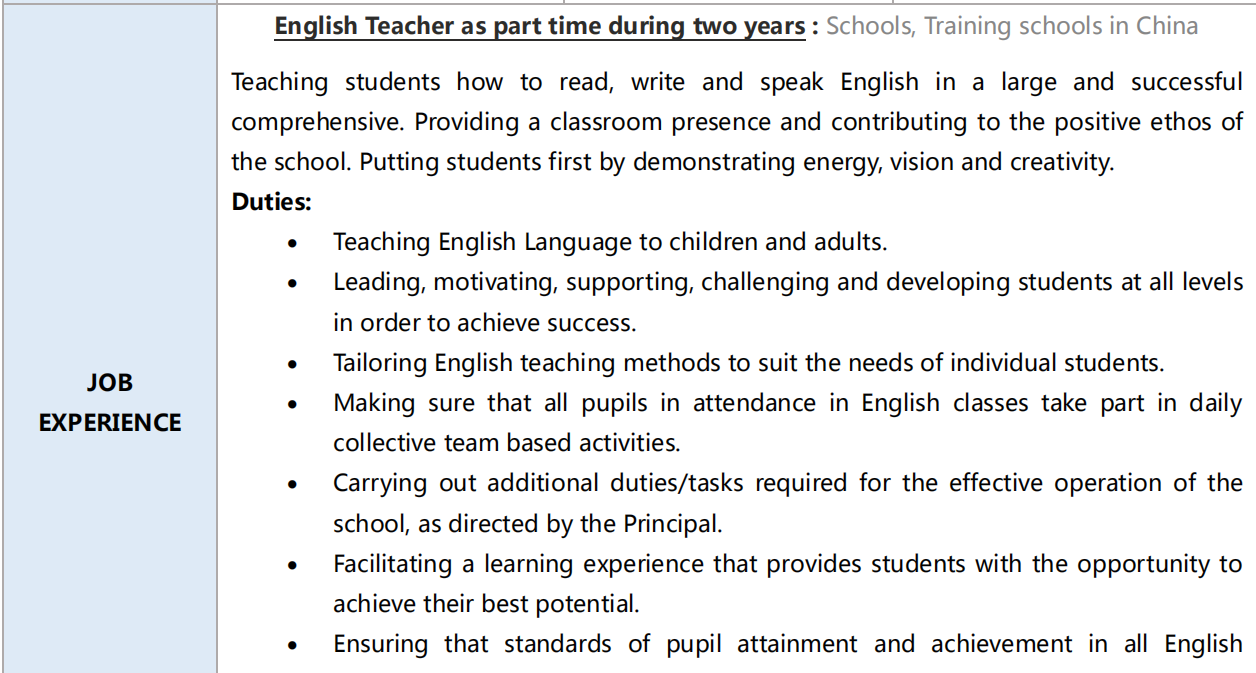 國籍: 未知 求職意向: 教師