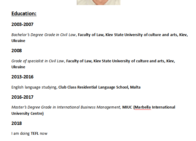 國(guó)籍: 烏克蘭 求職意向: 教師