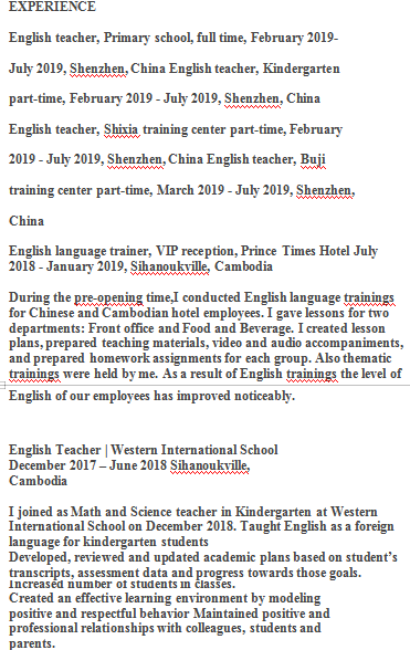 國(guó)籍: 美國(guó) 求職意向: 教師