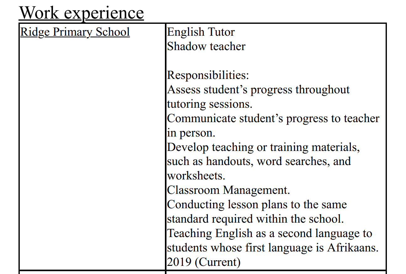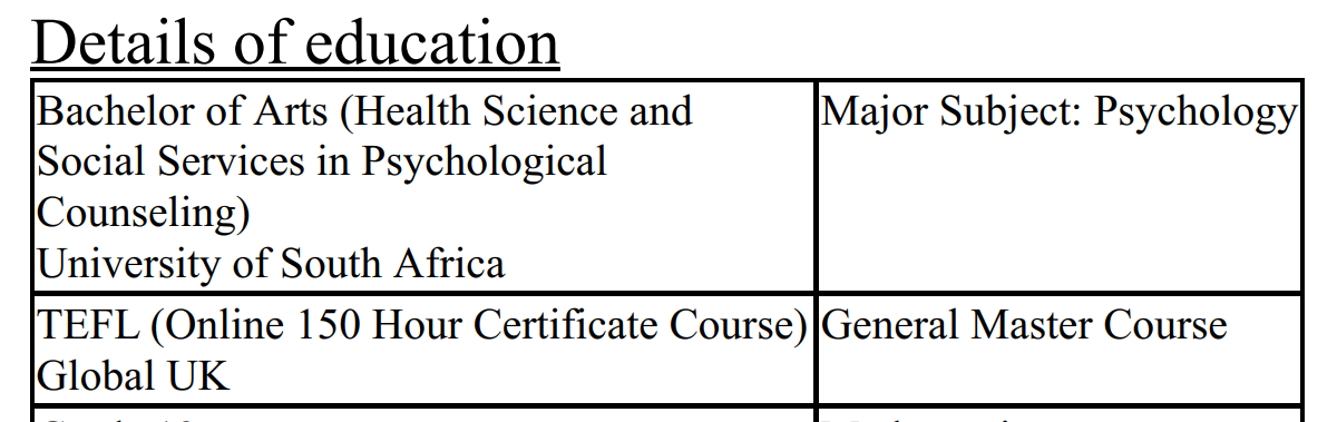 國籍: 南非 求職意向: 教師