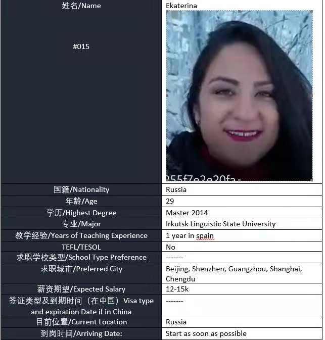 國(guó)籍: 波蘭 求職意向: 教師