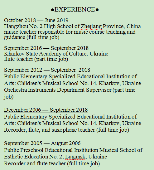 國(guó)籍: 烏克蘭 求職意向: 教師