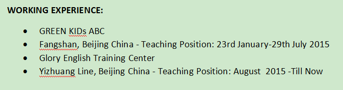 國籍: 其他 求職意向: 教師