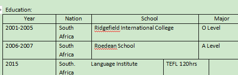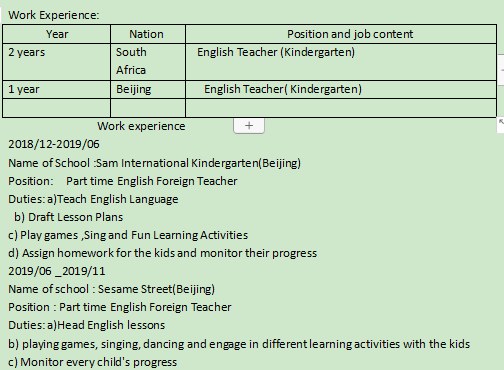 國(guó)籍: 南非 求職意向: 教師