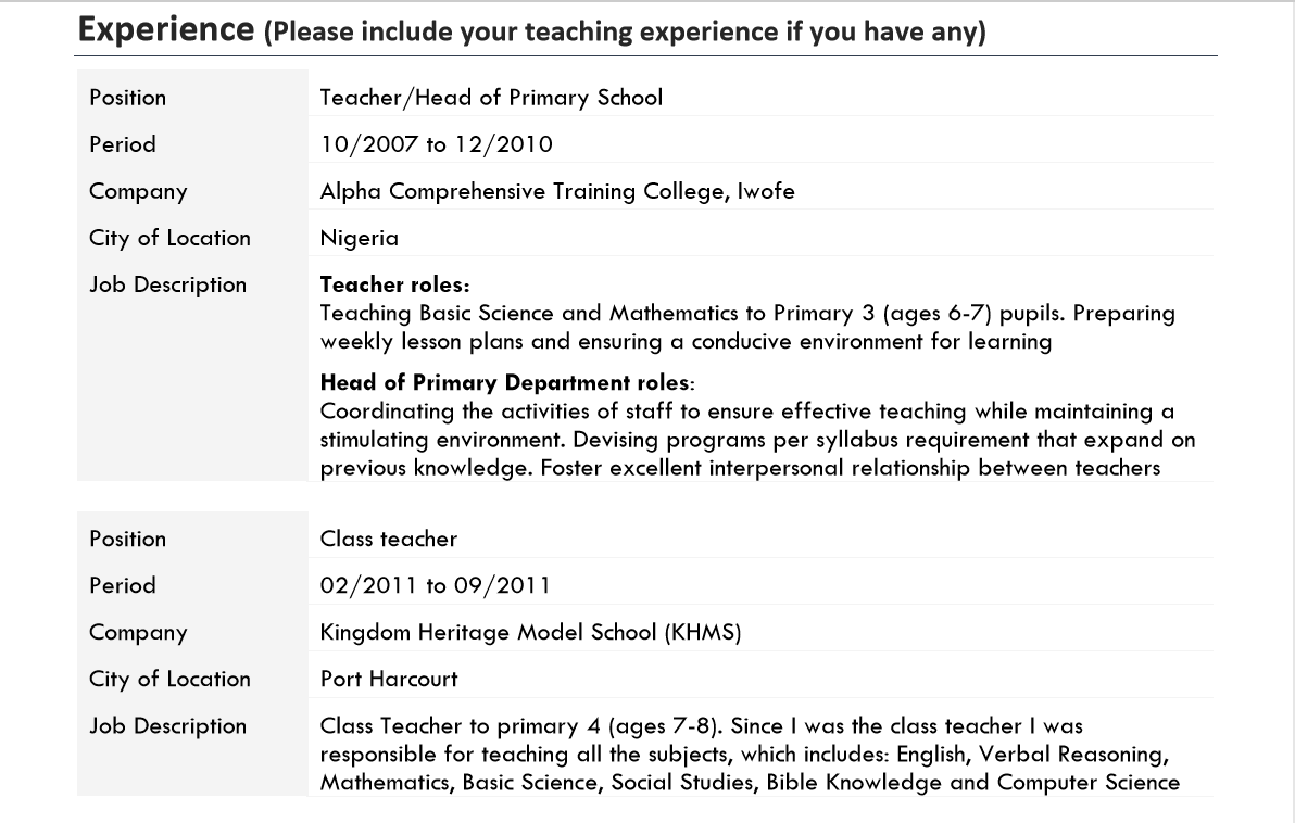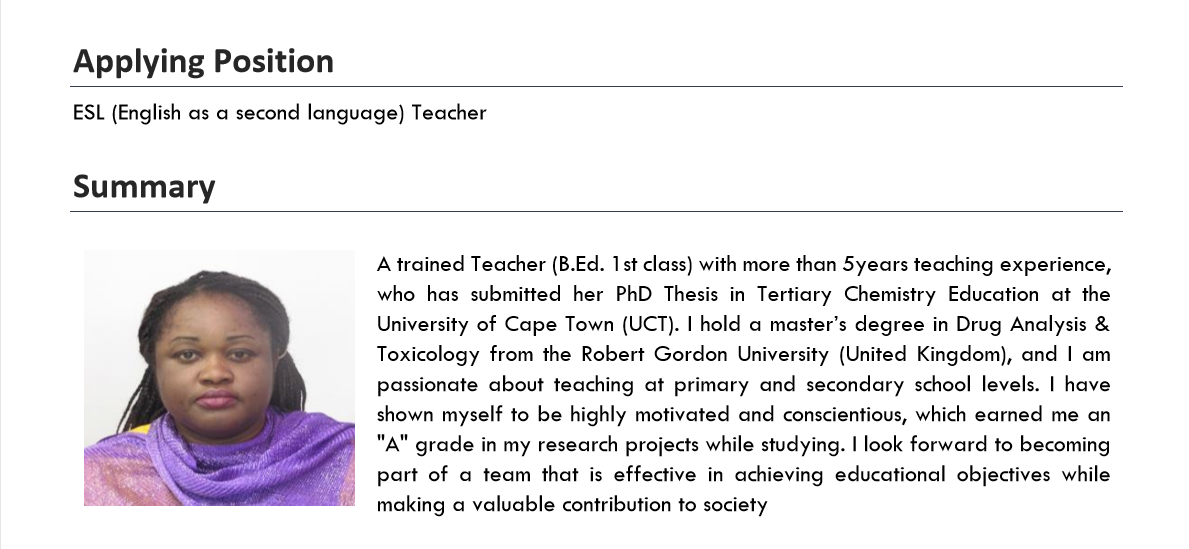 國籍: 南非 求職意向: 教師