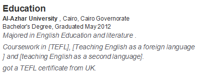 國(guó)籍: 摩洛哥 求職意向: 教師