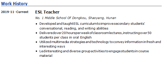口音口音不錯 有教學經驗 性格活潑 課堂豐富有趣 文教類工簽直接轉聘 |
