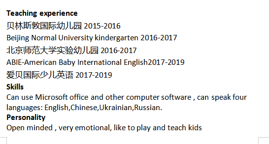 國(guó)籍: 俄羅斯 求職意向: 教師