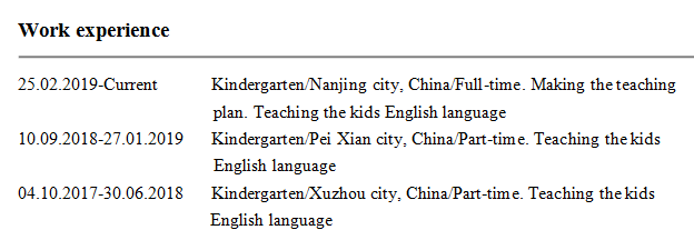 國籍: 德國 求職意向: 教師
