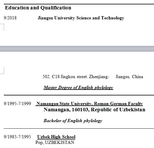 國籍: 巴基斯坦 求職意向: 教師