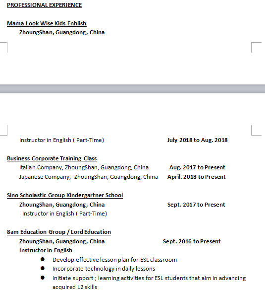 國(guó)籍: 摩洛哥 求職意向: 教師
