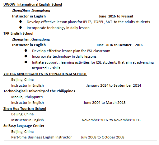國(guó)籍: 白俄羅斯 求職意向: 教師