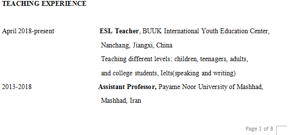 國籍: 其他 求職意向: 教師