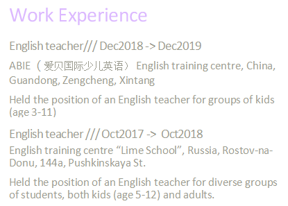 外教口音不錯 有非常豐富的教學經(jīng)驗 性格也不錯 工簽資料已經(jīng)準備齊全 傾向于廣東省 |