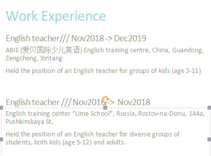外教口音不錯(cuò) 有非常知名的培訓(xùn)學(xué)校的教學(xué)經(jīng)驗(yàn) 性格很好 課堂很有趣 工簽資料已經(jīng)準(zhǔn)備好 求職傾向于廣東省內(nèi) |