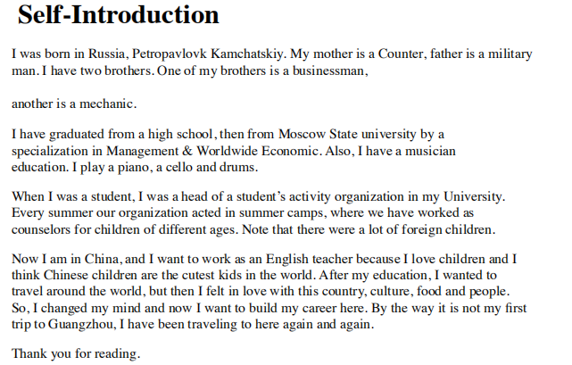 外教有教學(xué)經(jīng)驗 有兩年教學(xué)經(jīng)驗 人非常活潑 求職地傾向于廣東省 |