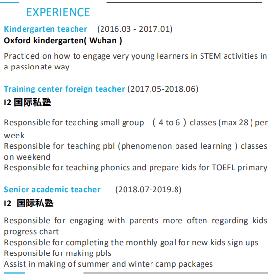 國籍: 俄羅斯 求職意向: 教師