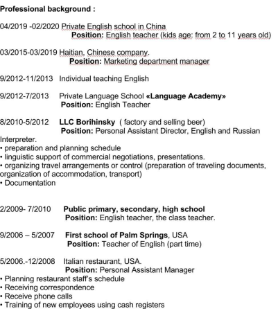 外教現(xiàn)在國外 口音不錯(cuò) 有10年教學(xué)經(jīng)驗(yàn) 性格也挺好 對學(xué)生有耐心 求職地不限制 |