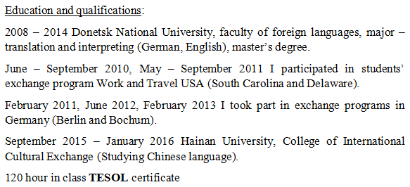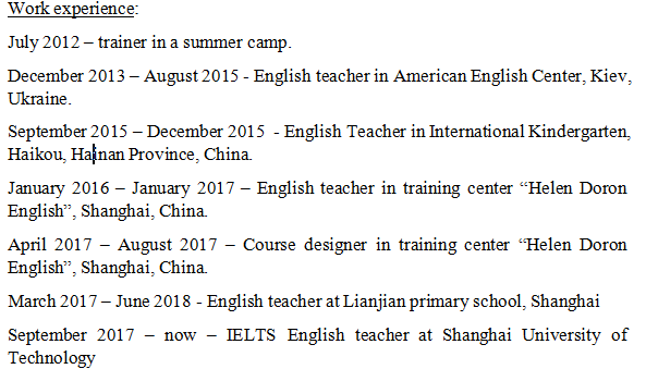 國籍: 俄羅斯 求職意向: 教師