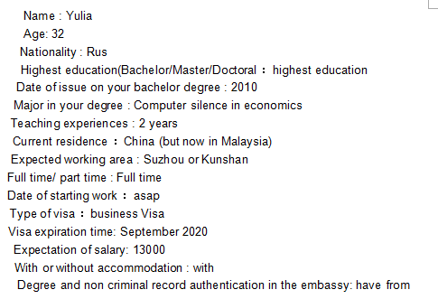 外教有兩教學經(jīng)驗 口音和形象都不錯 4月7日到中國 求職蘇州上海無錫昆山 |