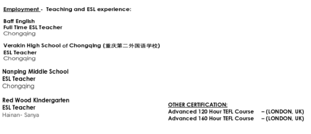 國(guó)籍: 澳大利亞 求職意向: 教師