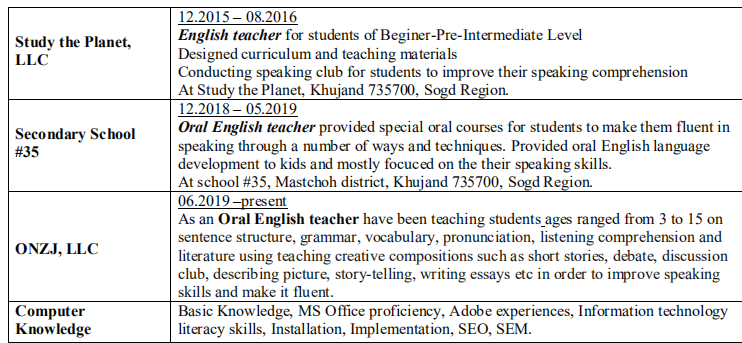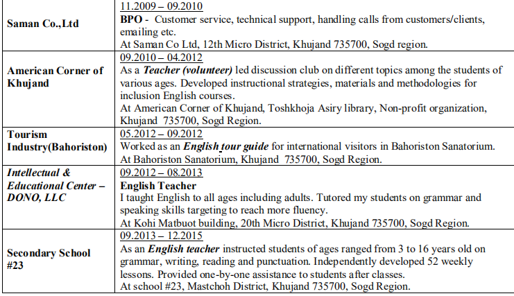 國籍: 白俄羅斯 求職意向: 教師