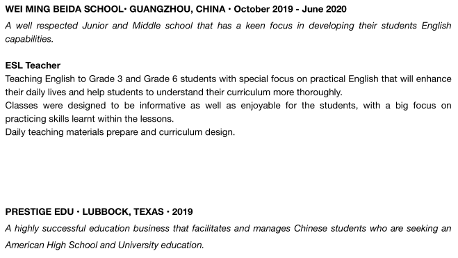 到崗: 越快越好 意向地點(diǎn): 廣州及附近公立或國(guó)際小學(xué),中學(xué),大學(xué)
