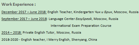 國(guó)籍: 亞美尼亞 求職意向: 教師