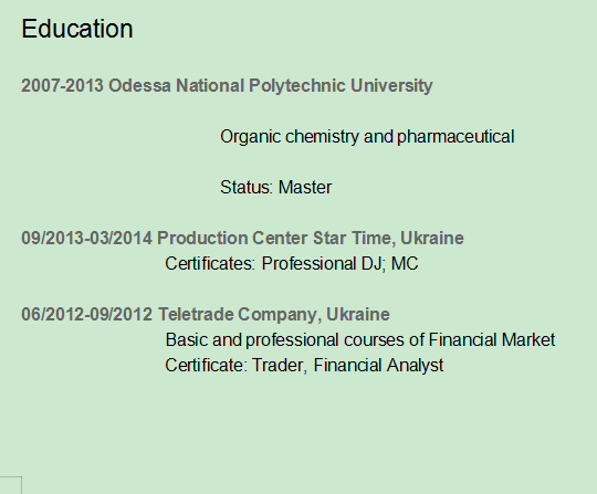國(guó)籍: 烏克蘭 求職意向: 教師