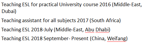國(guó)籍: 南非 求職意向: 教師