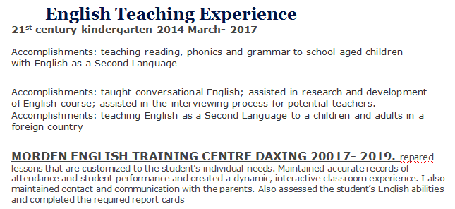 外教的工作經(jīng)歷